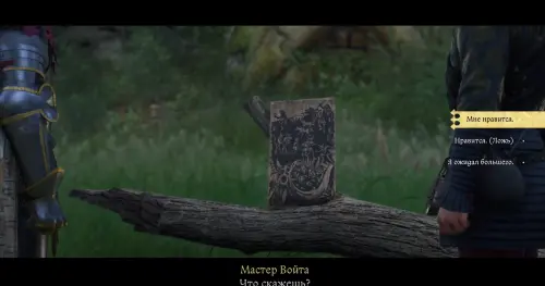 Тем или иным образом разобравшись с бандитами, возвратитесь к мастеру Войте в замке Троски и поболтайте с ним. Затем скажите ему «Я нашел капище» и согласитесь отправиться вместе с ним к святилищу. Гляньте небольшую кат-сцену, а затем посмотрите на нарисованную картину. Выберите ответ «Мне нравится» для повышения репутации.