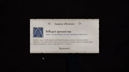 Арманд поздравит вас с вступлением в Гильдию и расскажет все, что вам нужно знать об этой фракции. Плюс, у вас откроется доступ к следующему квесту «Освобождение бедняков от налогов».