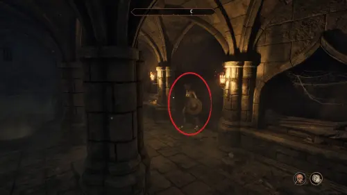 Отправляйтесь в храм Аркея и бегите к спуску в крипту. Статуэтка будет находиться в помещении слева, но будьте внимательны: подземелье будет патрулироваться стражницей.