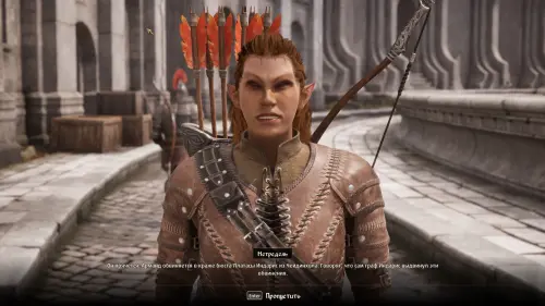 Капитан стражи будет разгуливать недалеко от дома Арано. Перед тем как рассказать ему о том, что бюст украла эльфийка, повысьте расположение Иеронима выше 70 единиц, чтобы он поверил вам.