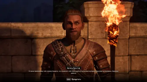 Заполучив искомый предмет, вернитесь в Портовый район Имперского города, который к этому моменту заполонит стража. Вы узнаете о том, что Арманда подставили, повесив на него кражу бюста графини. Подождите немного времени, пока к вам не подбежит Метредель (Methredhel).