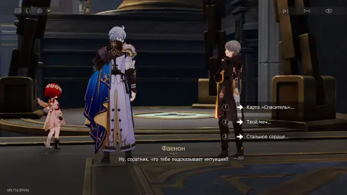 В конце концов, вы окажетесь в локации Элизия Эйдес. Начните следовать за Фаеноном, чтобы найти Кирену. Можете выбирать любые ответы во время диалога, так как они не повлияют на концовку и ваши награды, а лишь слегка изменят разговор.