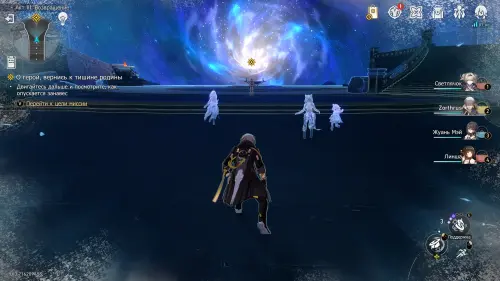 Переместитесь к якорю «Шепчущие покои» в Падшем городе сумерек Охема и пройдите к своей комнате. Поболтайте со стражником Зефом, чтобы встретиться с Дань Хэном, сражающимся с Похитителем пламени. Правда, враг почему-то застыл и не двигается.