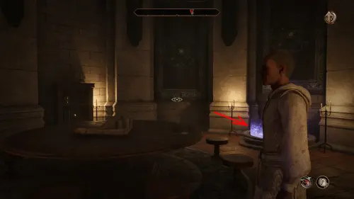 В Залах совета взаимодействуйте с еще одним порталом, который переместит вас аккурат в личные покои архимага, где на столике в конце кровати лежит нужный предмет.