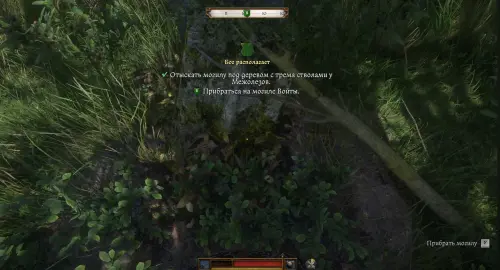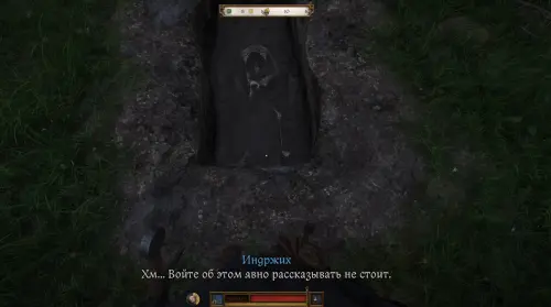 Посмотрите на дерево (клавиша «LAlt»), а затем слезьте с лошади, подойдите к нему и взаимодействуйте с могилой. Индро заметит, что здесь сто лет никто не убирался, поэтому решит сначала привести это место в порядок, прежде чем молиться.