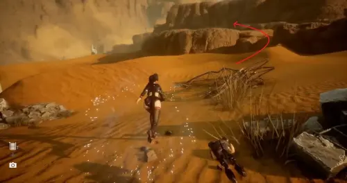 Идите на юг от лагеря «К северу от Погребенных руин» (North of Buried Ruins), где вы увидите металлический забор. Пройдите чуть вперед и справа от вас будет вывеска.
