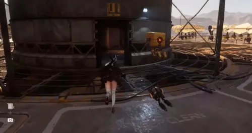 Пройдите вперед до платформы с контейнерами. Рядом с лестницей будет небольшой ящик с тканью, а на его боковой стороне бабочка.