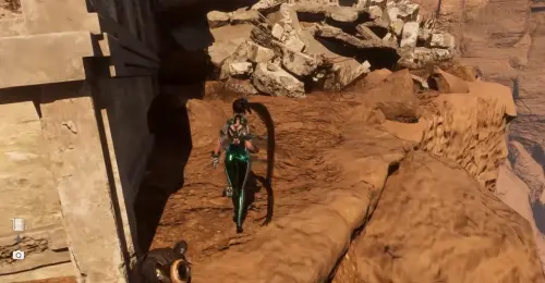 Не добегая до нее, идите на право и обойдите разрушенное здание. За ним будут обломки, а на против них, наверху бабочка. Залезьте на обломки и сделайте фото.