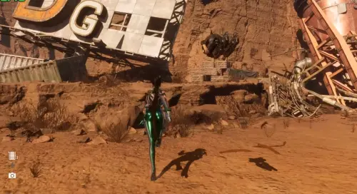 Еще одно граффити изображено на другой стороне рекламного щита. Расположен он на севере от «Центральной свалки металлолома» (Central Scrap Plains). Обойдите его и сфотографируйте бабочку.