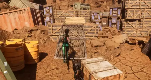Следующая бабочка ждет вас на севере от лагеря «Свалка» (Junkyard). Пройдите чуть вперед, пока не увидите красную стену, — преодолейте ее, после чего сверните направо. Перед вами снова окажется точно такое же препятствие.