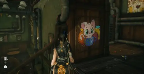 Рисунок Милой кошки изображен на желтой трубе под потолком. Она находится в тоннеле, на севере от доски объявлений. Сделайте с ней фото и следуйте дальше.