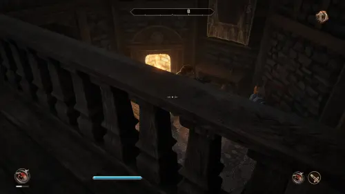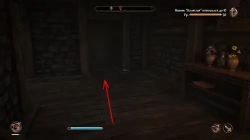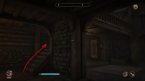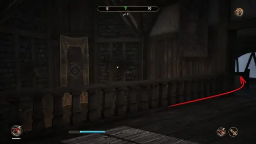 Забравшись в дом, войдите в скрытный режим и по возможности воспользуйтесь заклинанием Невидимости или Хамелеоном. Бегите на второй этаж и зайдите в комнатку справа.
