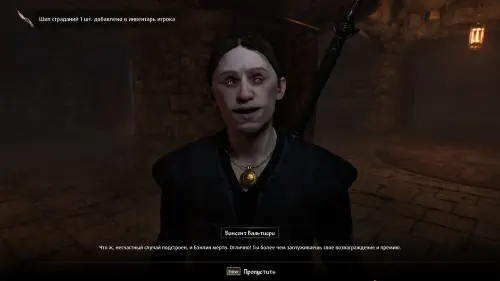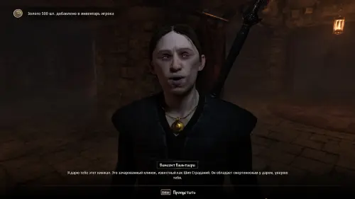 Вернитесь в Убежище к Винсенту Вальтиери и доложите о смерти Бэнлина. Если вы выполнили задание идеально и оставили в живых Громма, помимо золота вы получите уровневое оружие — Шип страданий (Sufferthorn).