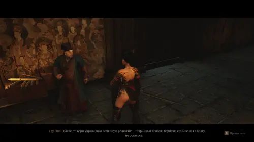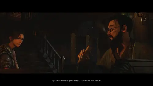 Добравшись до храма, войдите внутрь и спуститесь по лестнице на этаж ниже, где автоматически запустится катсцена. В разговоре с даосом Сюань Янцзывы узнаете подробнее о Пернатой хвори и получите первый ценный предмет Надпись на парче.