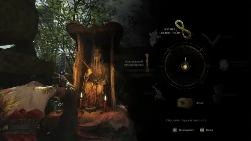 Покинув храм, справа во дворе вы увидите святилище. Выполнив подношение крови, вы активируете алтарь, с помощью которого в дальнейшем вы сможете перемещаться между локациями, перезагружать мир, а также улучшать персонажа, оружие и доспехи. Также, в случае смерти вы будете возрождаться у последнего активированного святилища.