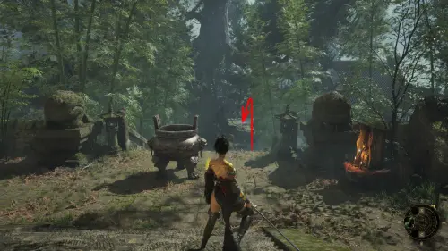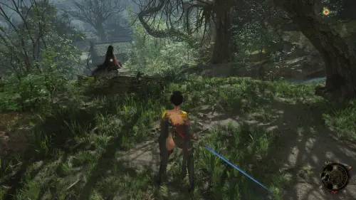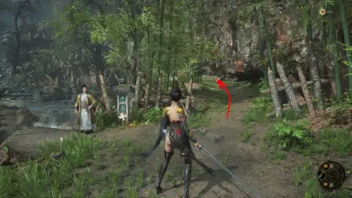 Вернитесь ко входу в храм и спуститесь вниз к огромному дереву. С правой стороны вы увидите NPC в соломенной шляпе. Поговорите с Лодочником, после чего вас ждет бой с первым боссом — Бай Келу.