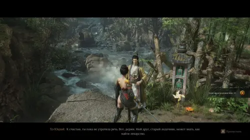 Теперь бегите вправо вдоль реки, пока вас не окликнет Хэ Юцзай. После небольшого разговора вы получите Бамбуковый фонарь, который будет служить удобной альтернативой факелу, а также Эликсир перерождения, способный полностью восстанавливать HP Учан и снимать все негативные эффекты.