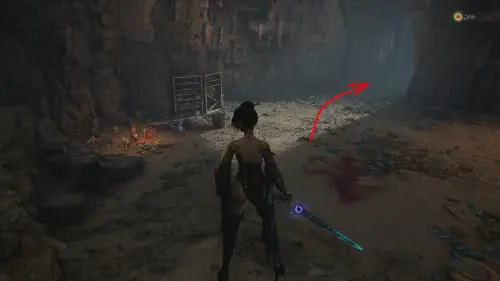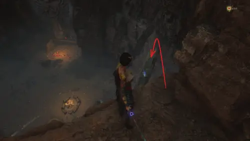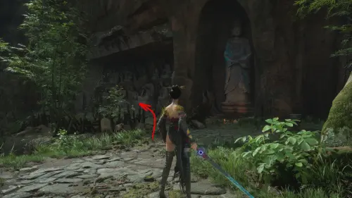 Как только вы активируйте алтарь Утесы Будды, спуститесь по лестнице справа и бегите в пещеру.
