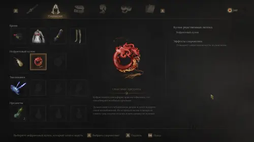 Следуйте по дороге в право, где в конце, под защитой двух врагов будет находиться Кулон родственных легенд, повышающий сопротивляемость к поджигаемости. Данный нефритовый артефакт очень пригодится в стычке со следующим боссом.