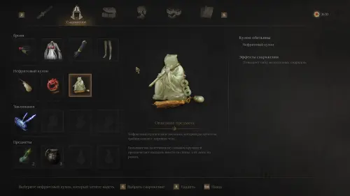 В одном из помещений вы найдете Красную ртуть и нефритовый Кулон обезьяны, повышающий эффективность метательных снарядов.
