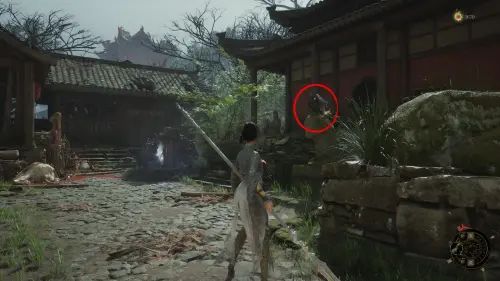 Бегите во двор, расположенный за святилищем, где у входа вас снова будет поджидать враг.