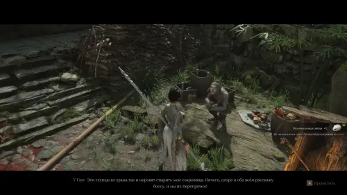 Активируйте алтарь и поговорите с У Ганом, лежащим слева. Он представится правой рукой Дутанги и расскажет о каком-то сокровище, скрытом на территории храма.