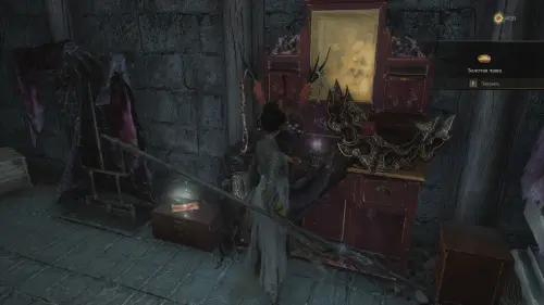 Забрав все предметы, бегите в главное здание. Сверните в комнату слева, прочитайте записку и заберите со стола Золотую чашу.
