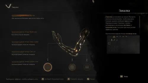 Вместе с этим вы разблокируете Закалку, получив первую акупунктурную иглу. С помощью Закалки вы сможете наделять свое оружие новой силой.