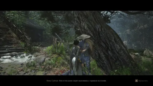 У подножия святилища Шу вы увидите NPC в соломенной шляпе. Поговорите с ним и узнайте о местных слухах. Нянь Суйчан расскажет вам о том, что в доме за ним находится Дитя в горшке, а также, что ему самому нужна помощь в поисках элексиров для больного брата.