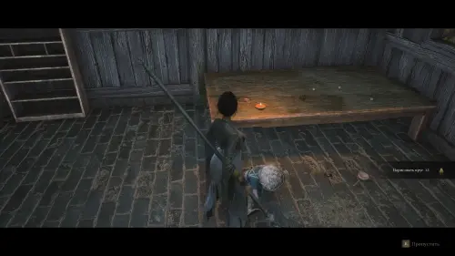 Бегите в домик слева, как показано на скриншоте, и победите врага, притворяющегося глиняным горшком. Уничтожив его, вы получите Тусклое красное перо.