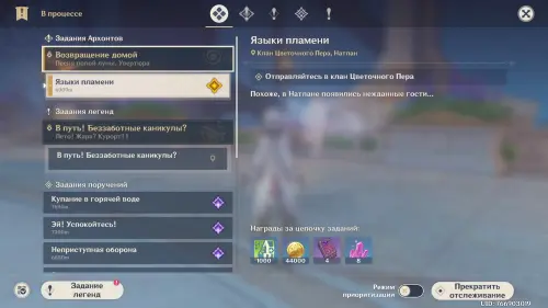 В качестве награды за прохождение этого задания вы получите 1000 очков приключений, 44 тысячи моры, 4 книги героя и 8 волшебных кристаллов усиления.