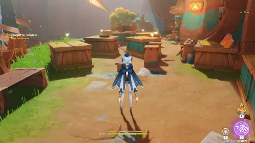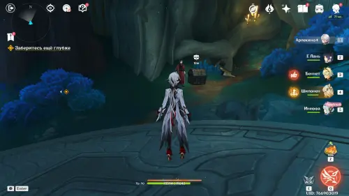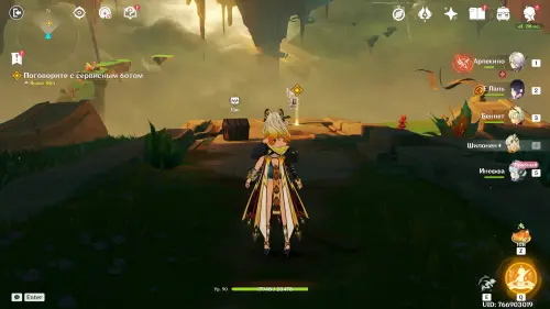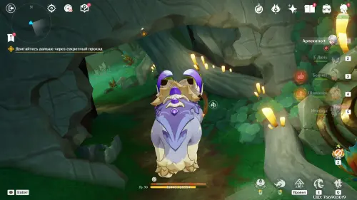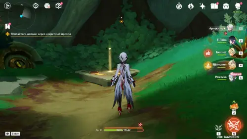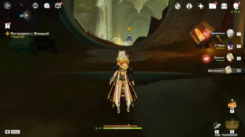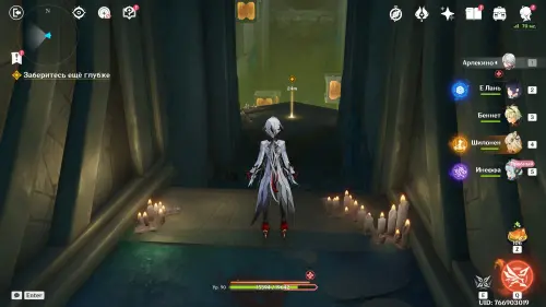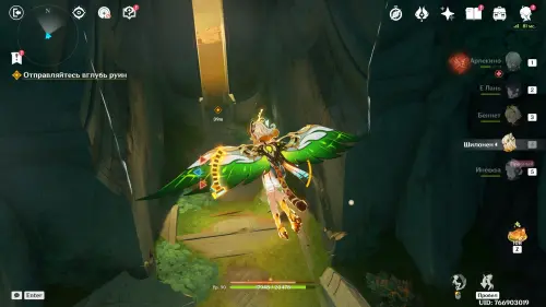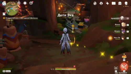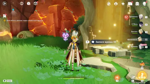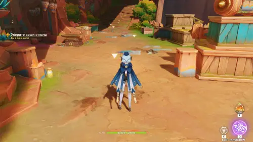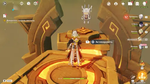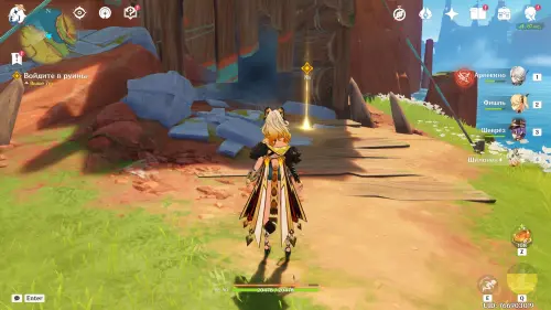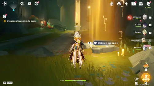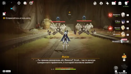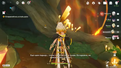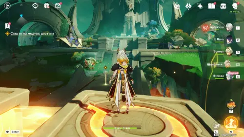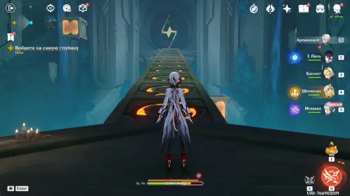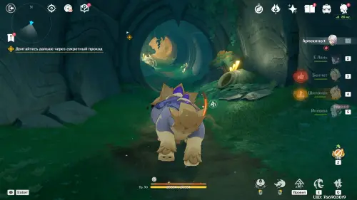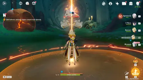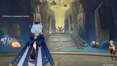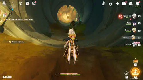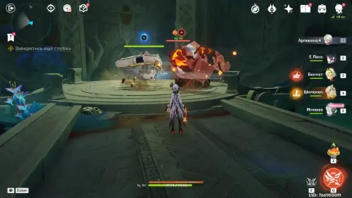 Пройдите в руины через туннель, встав на квестовый маркер. Вы должны будете пойти в сюжетное подземелье. Игра посоветует вам взять Гидро и Электро персонажей, так как к вашей команде присоединится Инеффа, наносящая основной урон Лунным зарядом.