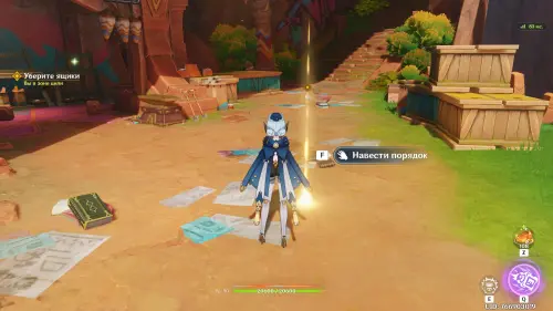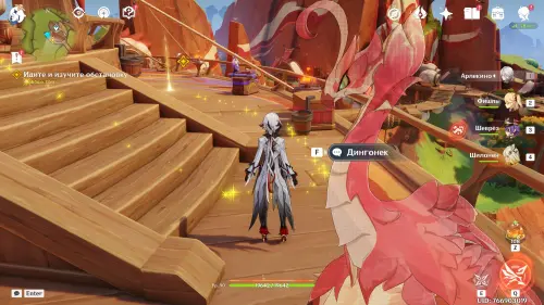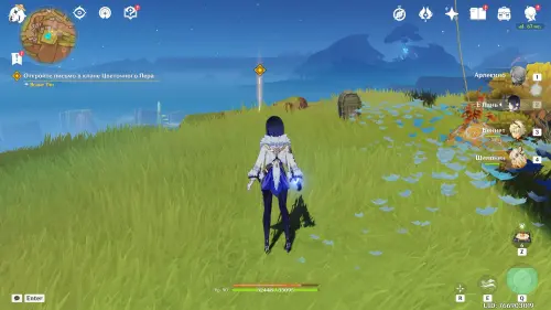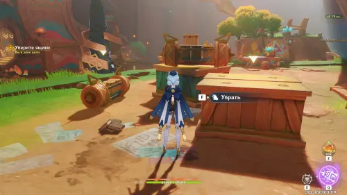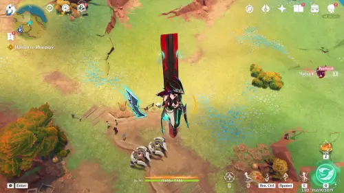 Пролетите через кольца вперед, а затем приземлитесь рядом с Инеффой, которая будет сражаться с автоматонами таинственного источника. Она присоединится к вашей команде. Отметим, что для полной реализации ее потенциала в вашем отряде обязательно должен иметься хотя бы один Гидро персонаж, чтобы вы могли активировать реакцию Заряжен, которая превращается в Лунный заряд. Подробнее про героиню мы рассказали в отдельном материале.