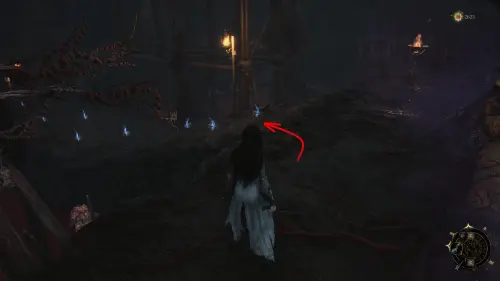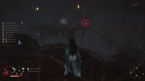 Немного погодя, с левой стороны вы увидите мост. Перейдите по мосту и заберите все предметы, лежащие в фиолетовой дымке: Утраченные останки и Кулон близнецов.
