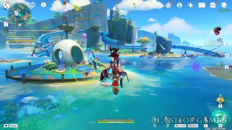 В Genshin Impact «Испытание! "Сумеречный круиз!"» – это один из этапов крупного квеста «Мир — холст!», входящего в линейку сюжетных заданий ивента «Лето! Жара? Курорт!». Протестировав с Муалани водный аттракцион, герои находят незаконченную стройку и решают помочь малышу иктомизавра доделать начатое. Далее мы расскажем, как завершить квест, создать Кусь-кусь акулу и генератор волн, а затем преодолеть экскурсионный маршрут с Муалани.
