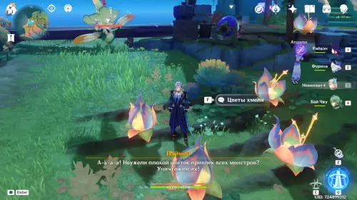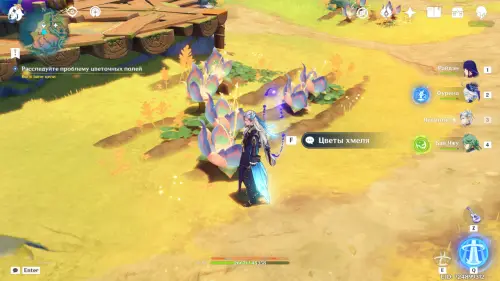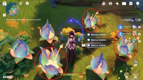 После сражения осмотрите самый южный цветок. Теперь вам придется одолеть группу плесенников, моровиков и хиличурлов.