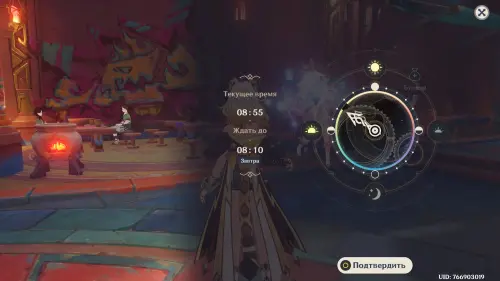 Итак, первым делом дождитесь утра следующего дня, перемотав время с помощью меню Паймон на 08:00-12:00. После этого переместитесь на Беззаботную ярмарку и подойдите к стойке регистрации для получения награды. Гляньте небольшой ролик, в котором вы увидите, что ваши совместные фото кто-то изменил, а Аша сбежал.