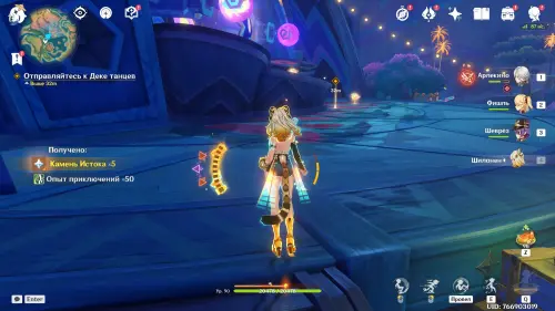 Затем отправляйтесь к Деке танцев и приблизьтесь к квестовому маркеру. После этого начнется небольшое испытание, в рамках которого вам необходимо вовремя нажимать на клавишу «Пробел». На третьем этапе нужно будет также разукрашивать путь перед Ашу, используя клавиши «Е» и «Q». В конце посмотрите красивый ролик.