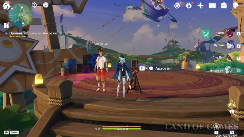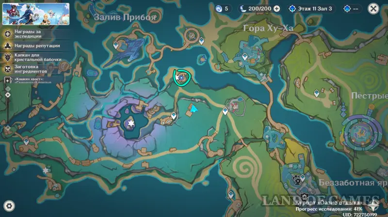 Для запуска миссии отправляйтесь на остров-курорт Таночциток («Оазис отдыха»), появившийся с выходом летнего ивента «Лето! Жара? Курорт!». Если активность недоступна, полностью завершите цепочку «Заблудшие дети леса» в Пиро регионе.