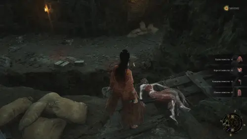 Бегите дальше по локации, убейте разбойника и заберите Потрепанный мешок, потерянный Нянь Суйчаном.