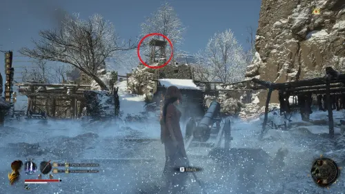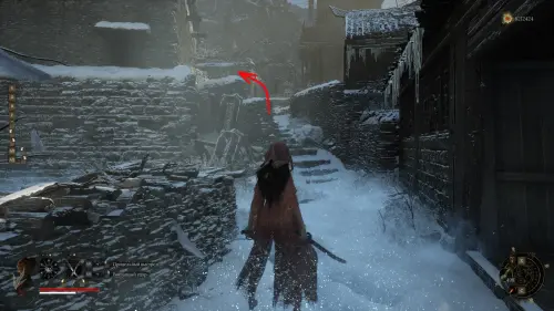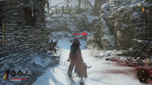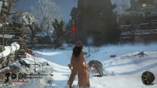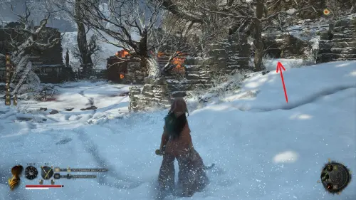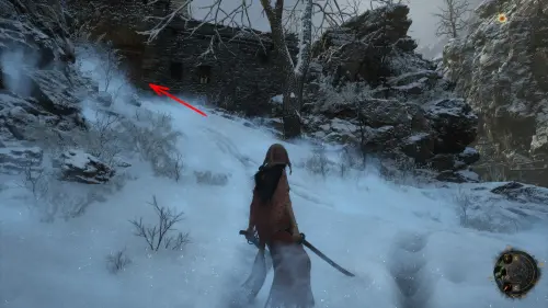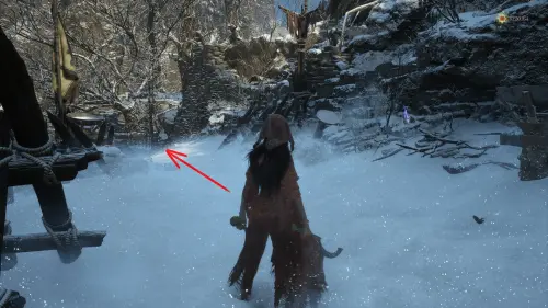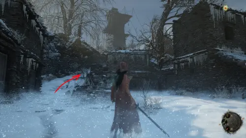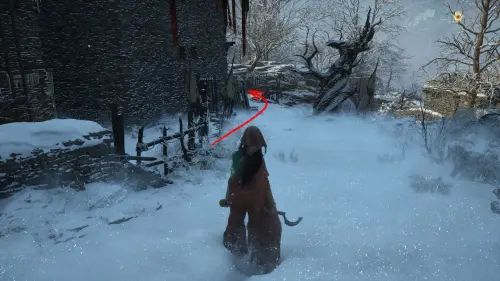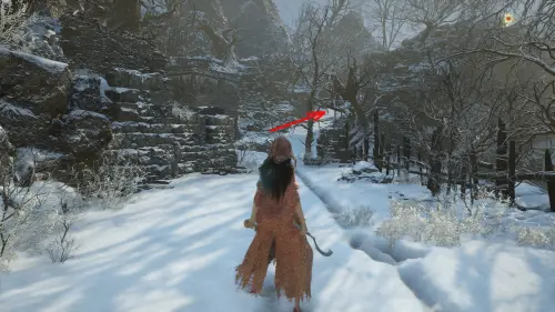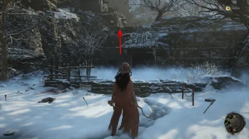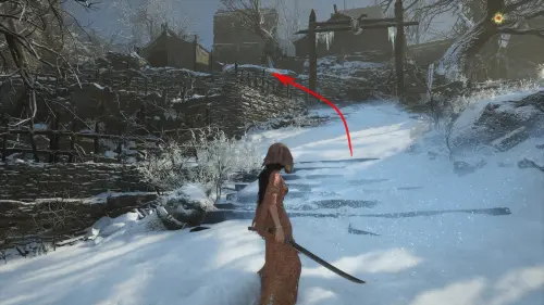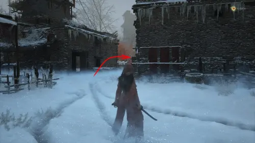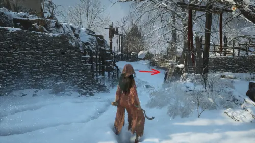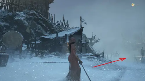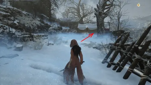 Вернитесь к святилищу Снежный перевал и бегите вперед. На развилке поверните налево и откройте двери в ближайшую деревню.