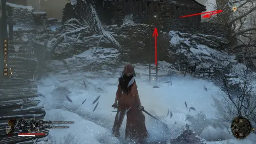 Чтобы разжечь второй сигнальный костер, вернитесь к первой башне и поднимитесь по лестнице в домике напротив.