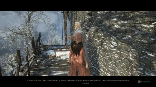 Добравшись до первой башни, заберитесь на самый верх, поговорите со Старцем в белом и разожгите огонь. Заберите из шкатулки, лежащей рядом, Пороховое копье и спуститесь с башни.