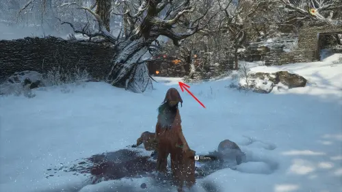 Убейте врагов и бегите вперед к красному дереву. По дороге сверните в небольшой закуток справа, чтобы сразиться с врагом с красными глазами. Там же из шкатулки вы сможете забрать клинки Парные разбойники.