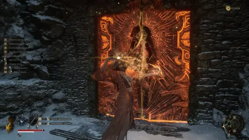 Далее загляните в соседний двор слева, где будет находиться крылатый моб, после победы над которым вы получите заклинание Пламя темного льда.