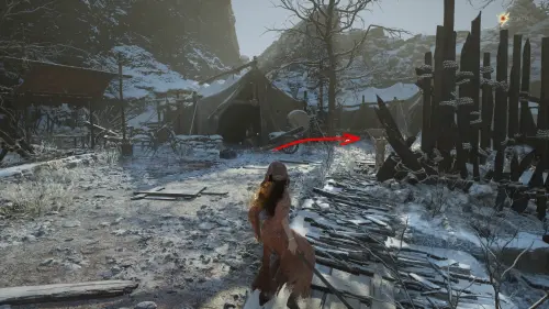 Самым удобным способом проникнуть в лагерь — воспользоваться зачарованной дверью, находящейся в районе третьей башни, рядом с проходом к святилищу.