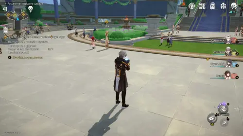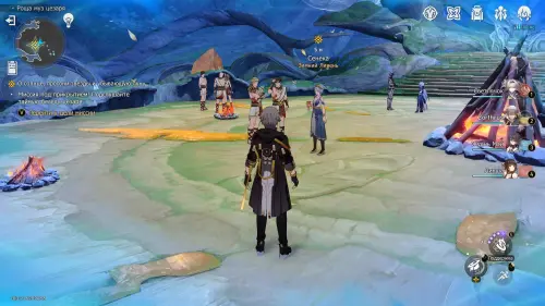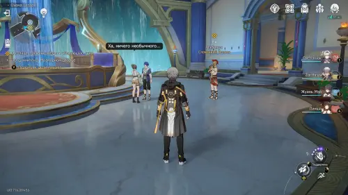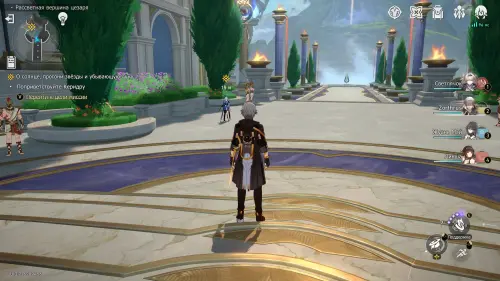 Оказавшись в храме, пройдите вперед через дверь и подойдите к квестовому маркеру для начала нового ролика, в рамках которого вы познакомитесь с Керидрой и Гисиленсой, а затем вернетесь в Охему, попав в локацию Рассветная вершина цезаря. Можете сначала поговорить с подданными справа и слева, а потом уже пообщаться с Аглаей и Трибби.