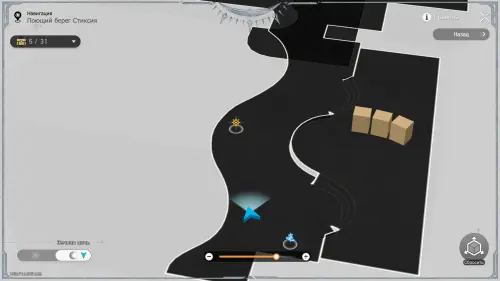 Оно стартует автоматически сразу же после прохождения предыдущей миссии цепочки под названием «О нектар, заполни пустой ствол». Если этого не случилось, то попробуйте выйти из учетной записи, подождать 20-30 минут и перезайти. Вы сможете спуститься на нижний уровень новой локации Поющий берег Стиксия, представляющий собой огромную 3D-карту.