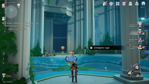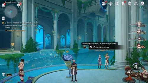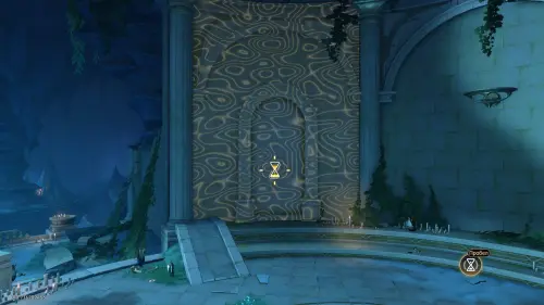 Далее поверните камеру влево, наведите ее на песчаные часы и зажмите «Пробел», чтобы восстановить чашу и снова заполнить пруд впереди вас. Пройдите через ряску и послушайте разговор между Керидрой и Гисиленсой.