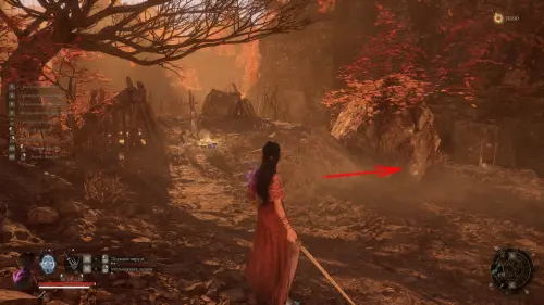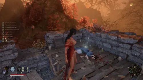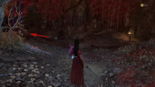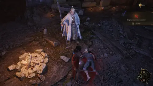 Следуйте по тропинке налево и уничтожьте врага. Подберите у могильной плиты Сверкающее красное перо и вернитесь назад.